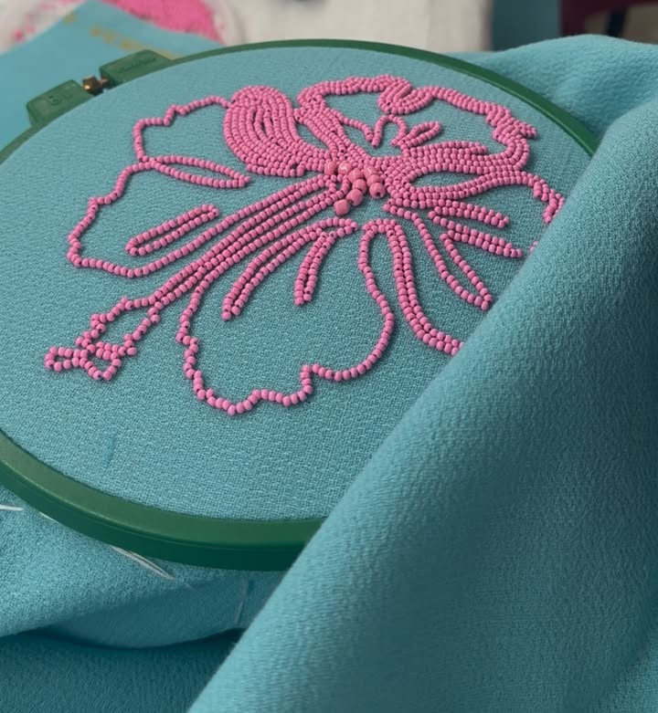NYES collaborated with HOLD NYC to elevate their SS26 collection with hand-crafted embellishments. Our team brought Hawaiian-inspired hand-beaded flowers to life on a striking blue jacket, while also adding intricate beading details to swim trunks. Each embellishment was executed with care and precision, creating unique, runway-ready pieces.